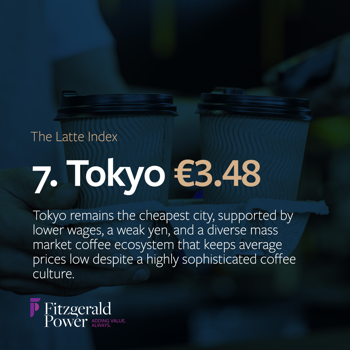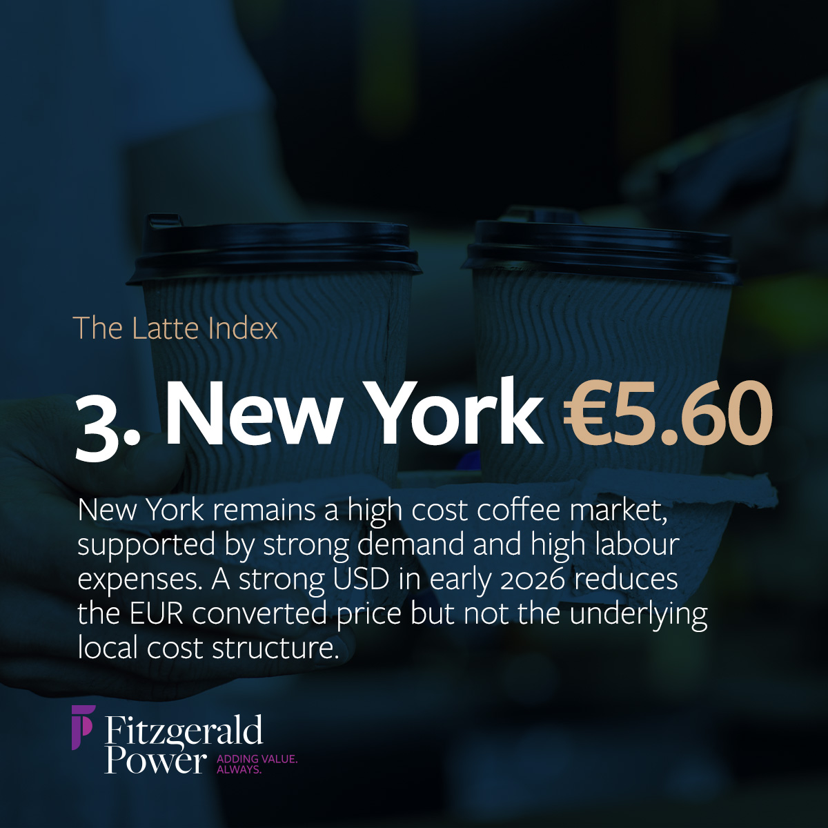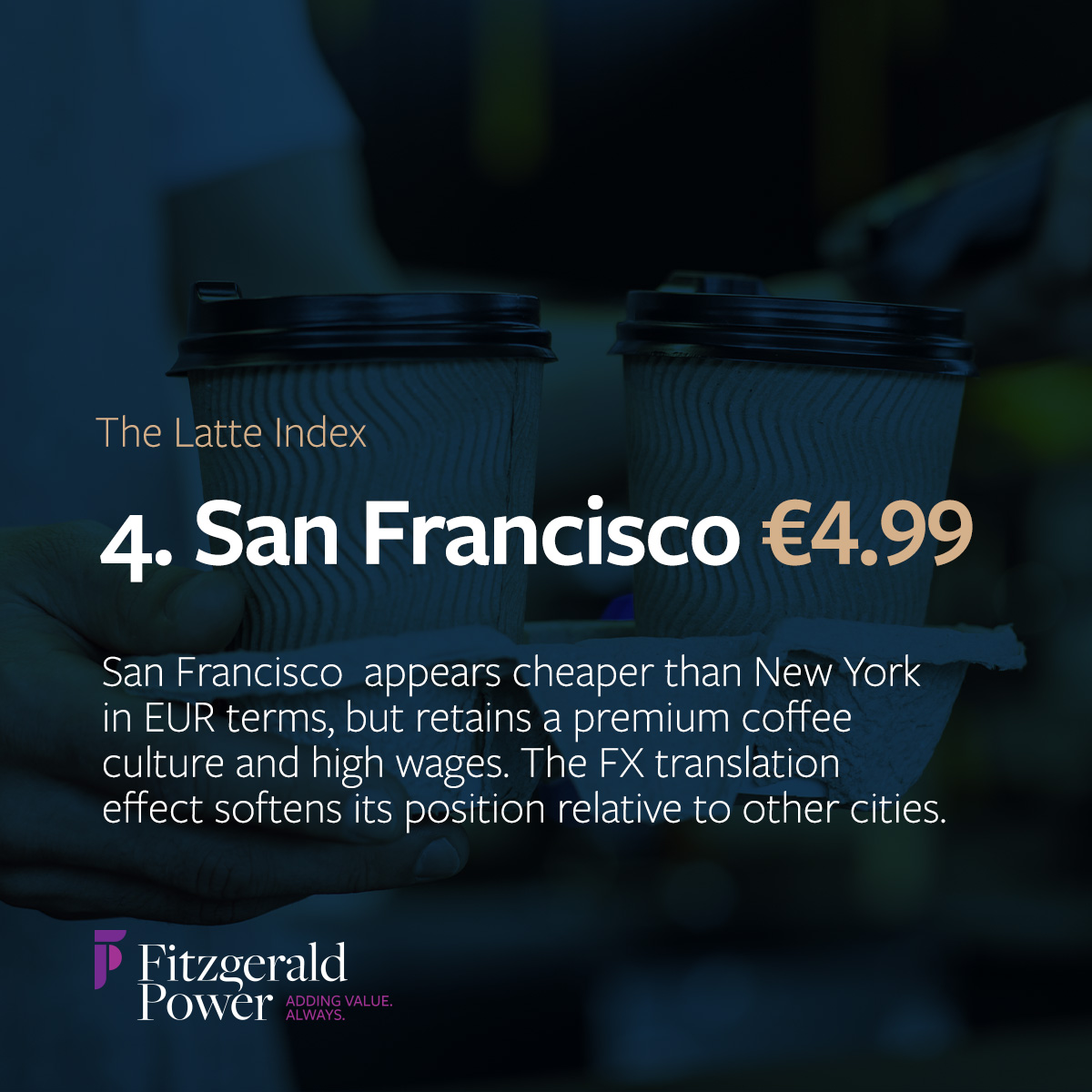 Introducing the Latte Index: Fitzgerald Power’s quarterly snapshot of the price of a standard Starbucks latte across key international cities, converted into euro using ECB exchange rates.